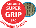 O Solado é composto por uma borracha especial, com Tecnologia Super Grip resistente ao escorregamento em piso cerâmico com solução de detergente e em piso de aço com solução de glicerol, resistente ao óleo combustível e à absorção de energia na região do salto (o mais elevado nível de teste escorregamento).